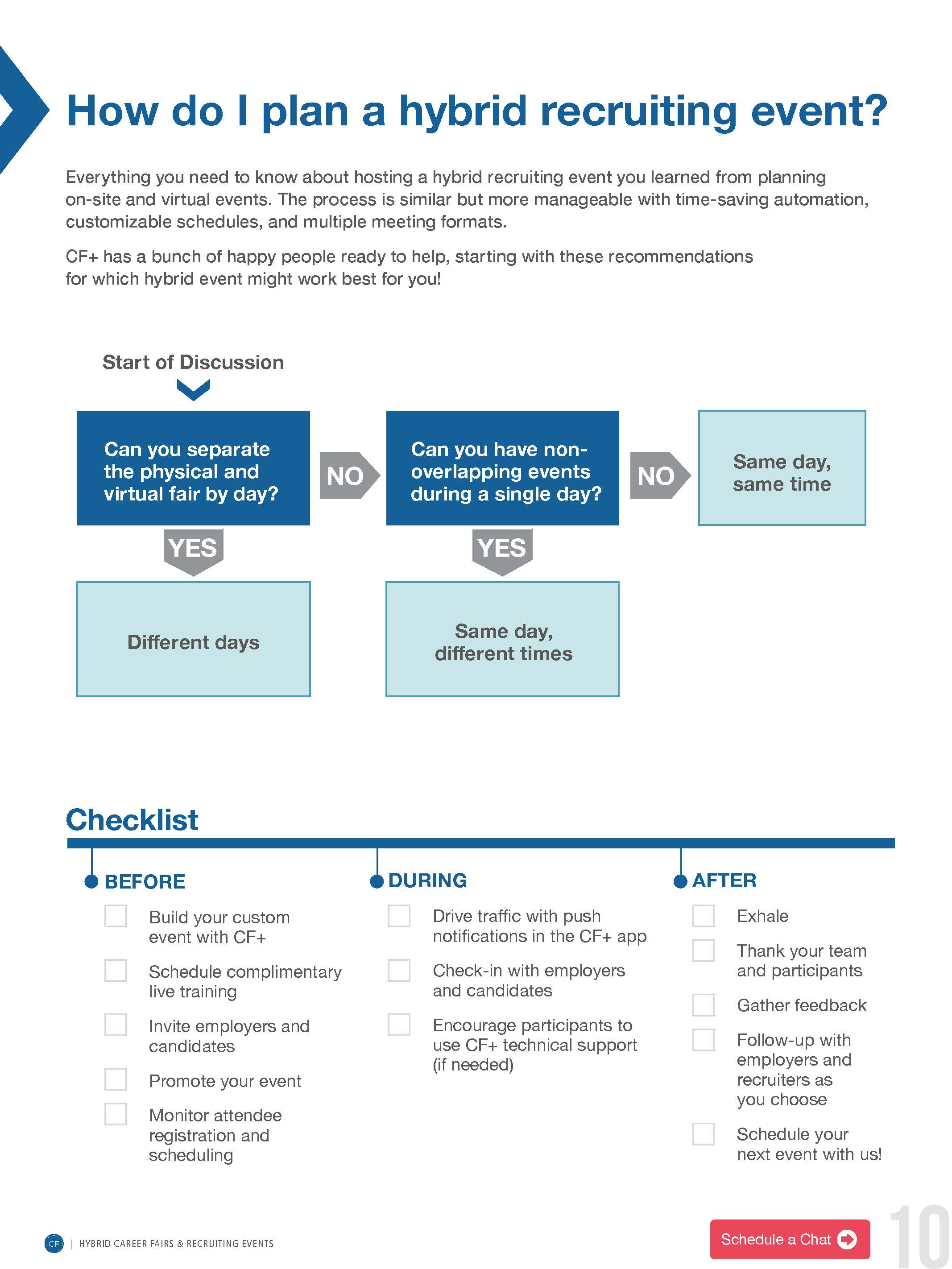 Pro Tip: if your event host is using CF+ software with Meetings and Resume Drop, you can pre-schedule 1:1 time with recruiters and connect before, during, and after the event!